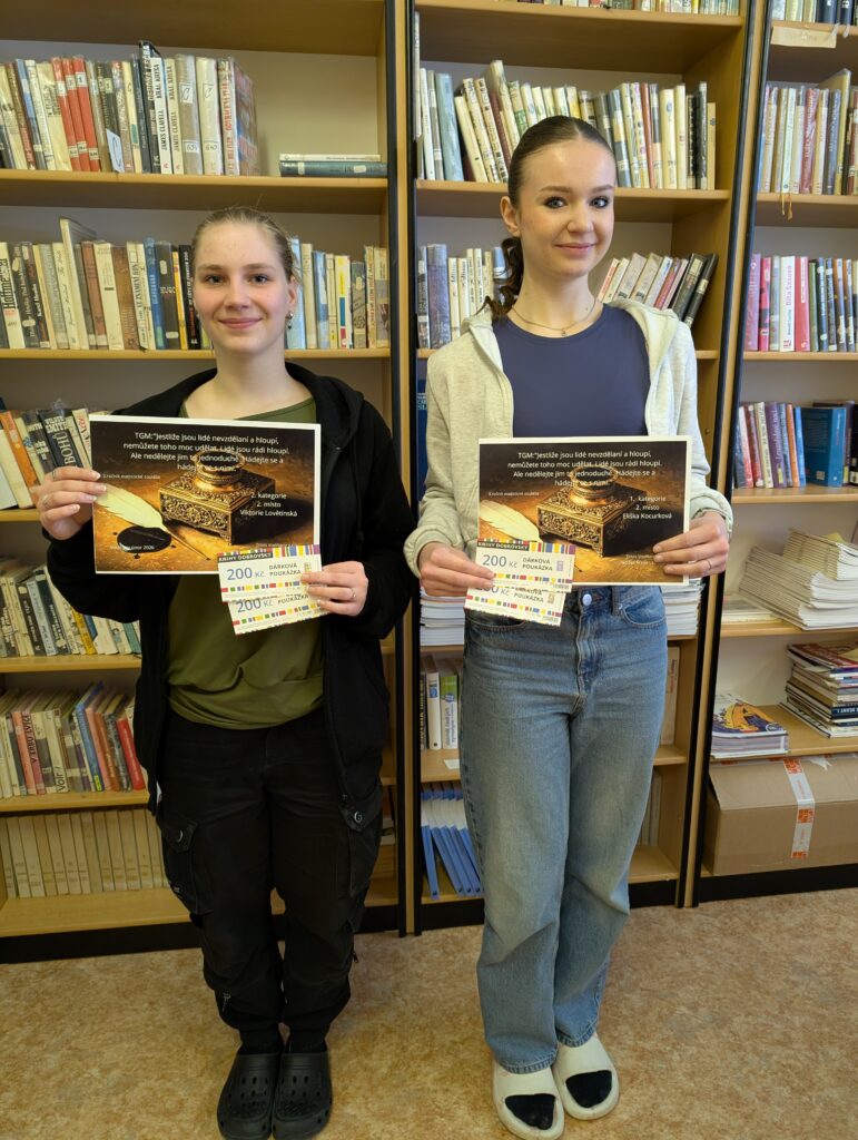 Naše žákyně Eliška Kocurková (ZOB2) a Viktorie Lovětínská (ZOB3) uspěly v literární soutěži, kterou organizovala škola TRIVIS Vodňany. Obě obsadily 2. místo, každá ve své kategorii. Ve svých esejích se zabývaly otázkou, proč společnost potřebuje vzdělané a přemýšlivé lidi.